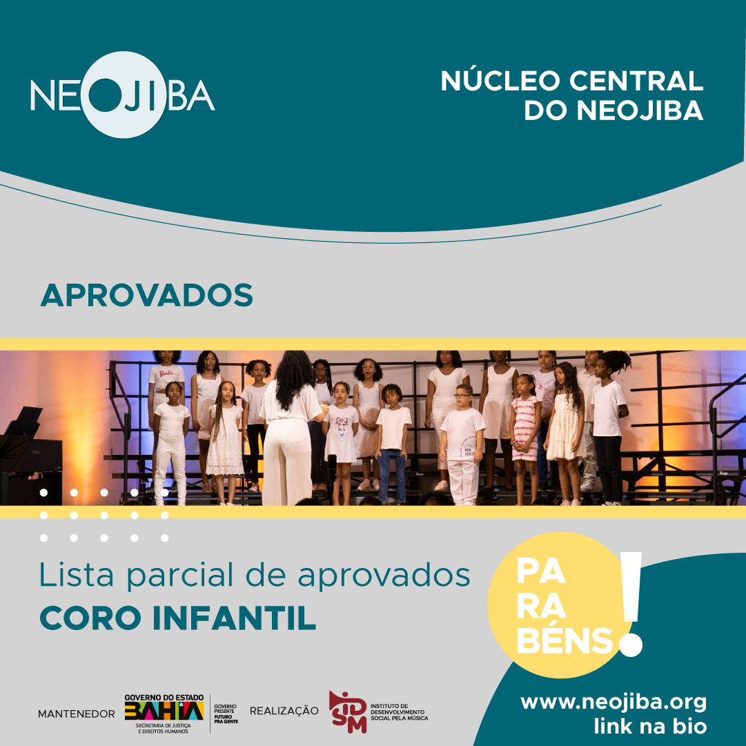 PARABÉNS AOS APROVADOS PARA O CORO INFANTIL
