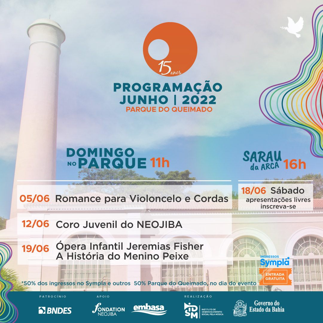 Confira a programação do NEOJIBA para este mês. Teremos os domingos no parque🌳 até o dia 19, sempre às 11h, e o Sarau da Arca.