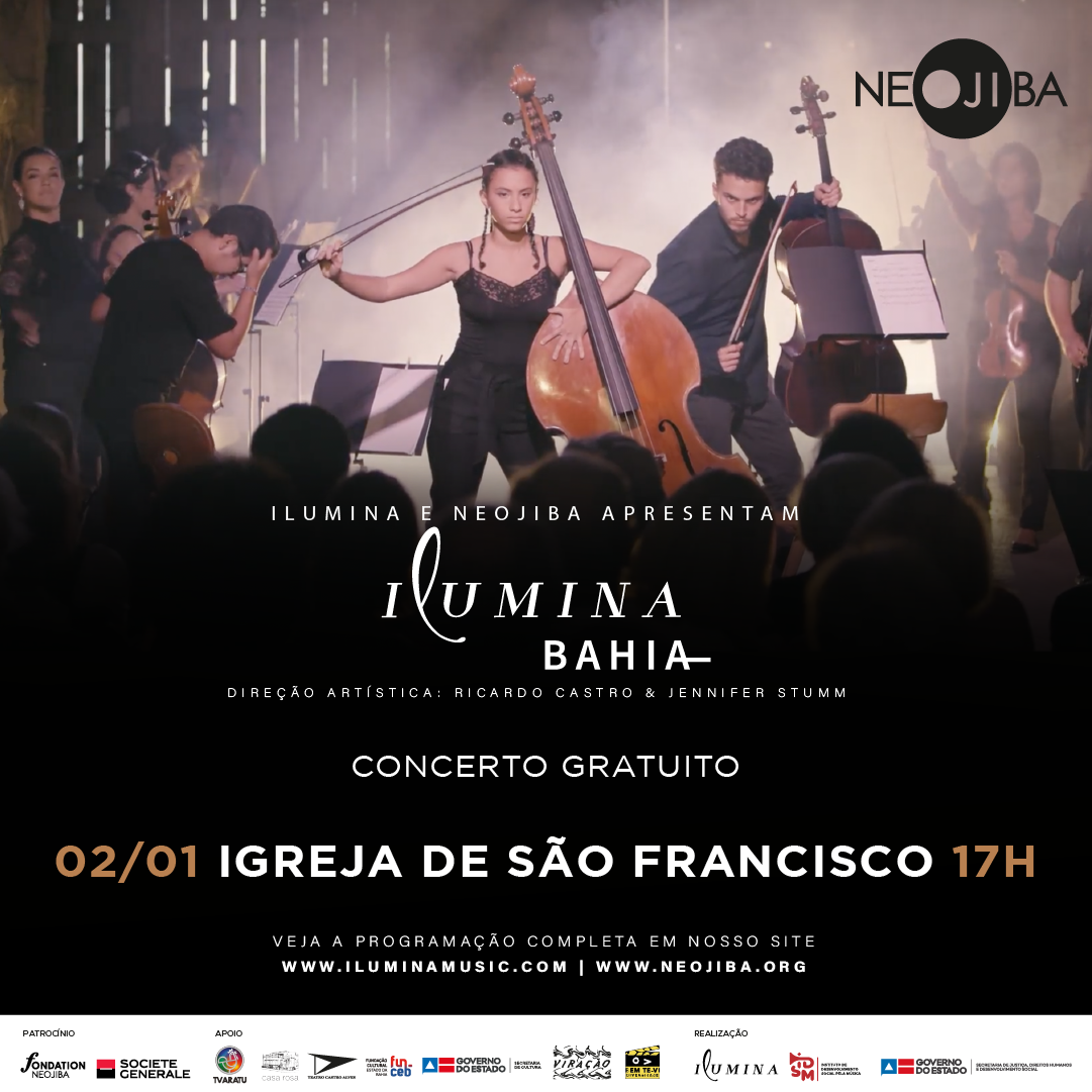 Esse é o terceiro concerto do Ilumina Bahia, que começou no dia 28 de dezembro e vai até 7 de janeiro de 2022. O Ilumina é uma das principais iniciativas de formação musical da América Latina e desembarca em Salvador pela primeira vez, a convite do NEOJIBA, programa do Governo da Bahia.