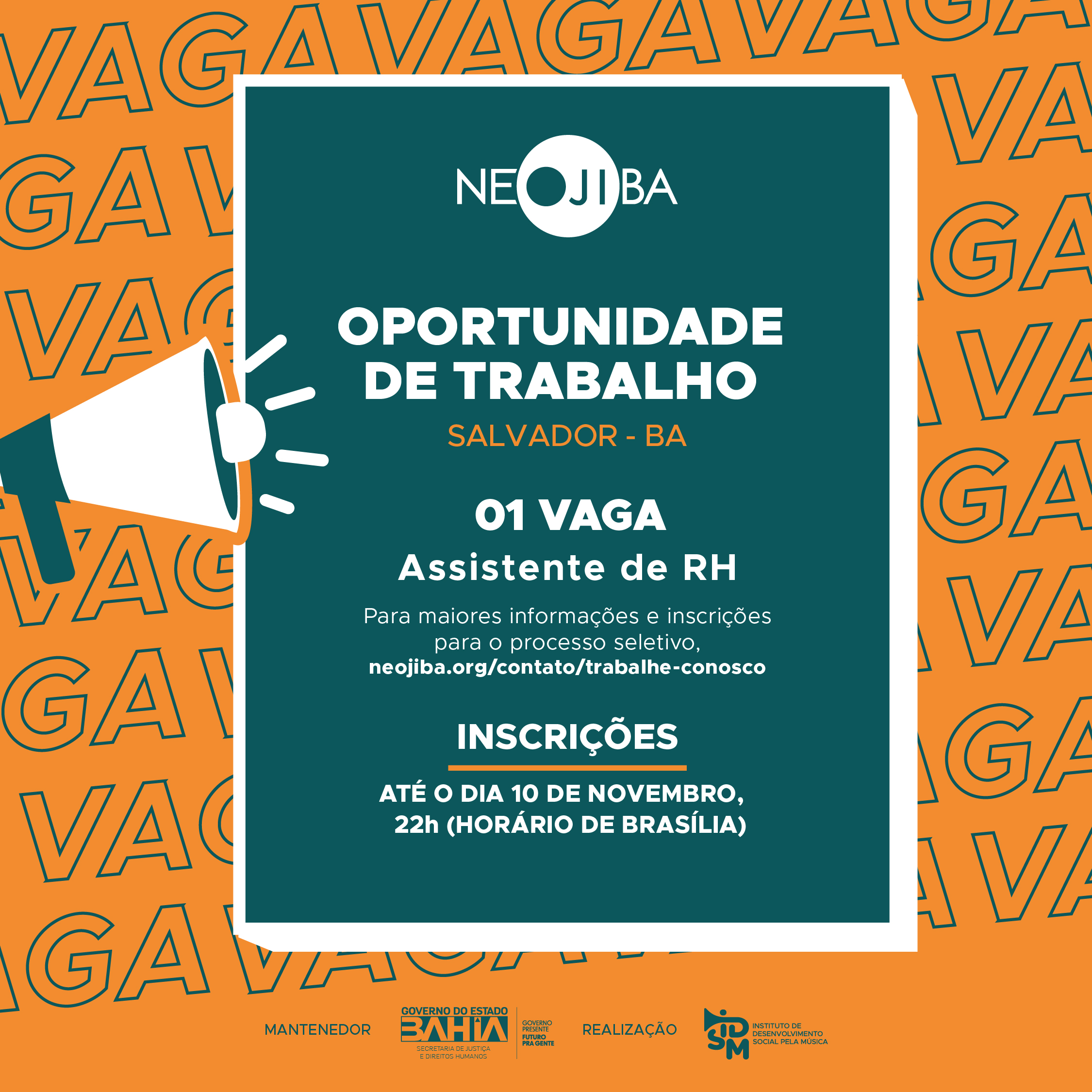 O Instituto de Desenvolvimento Social pela Música (IDSM), Organização Social que faz a gestão do PROGRAMA NEOJIBA (Núcleos Estaduais Juvenis e Infantis da Bahia), no uso de suas atribuições legais, torna pública a realização do Processo Seletivo Simplificado para contratação de pessoal, em regime CLT, na área de Recursos Humanos.