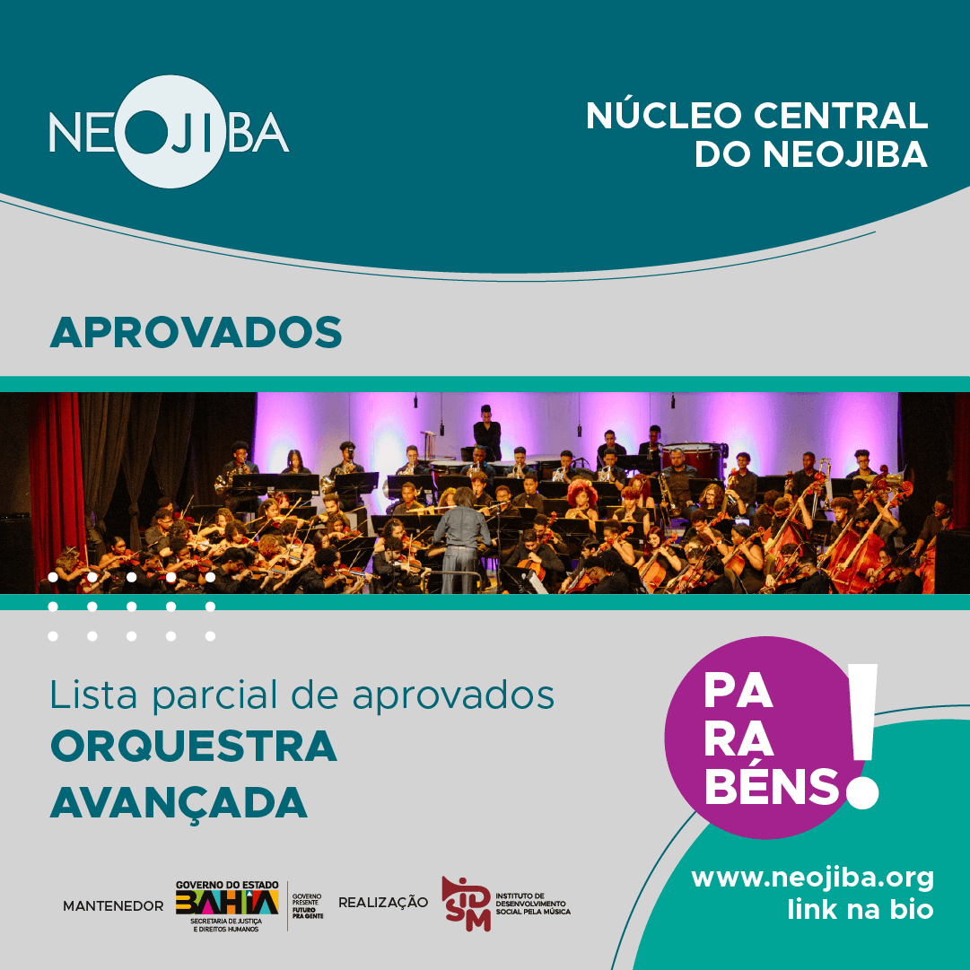 PARABÉNS AOS APROVADOS PARA ORQUESTRA AVANÇADA